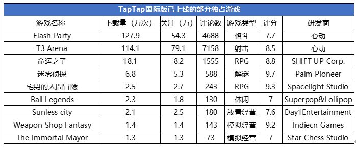 来源:TapTap国际版官网;游戏财经汇制图(不完全统计)