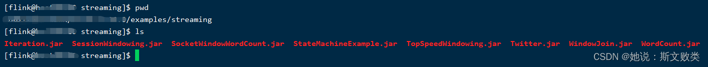 2.在Flink 1.14.2 二进制发布包中官方已经提供了部分demo供用户测试和体验,我们可以在flink目录下examples中找到。本次体验使用经典、简单的WordCount.jar