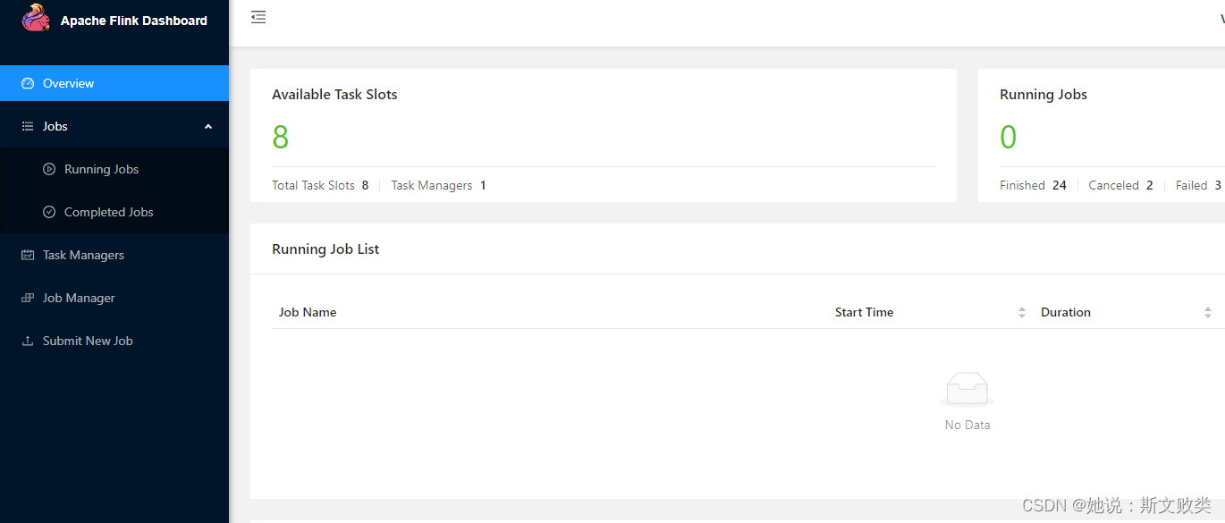 1.在浏览器键入http://ip:8081 进入Flink Web UI