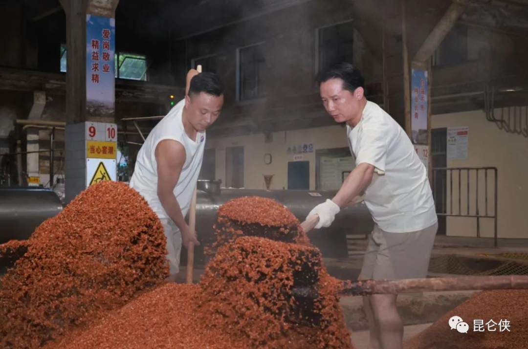 现任茅台董事长丁雄军(图右)亲自带队在车间视察工作。