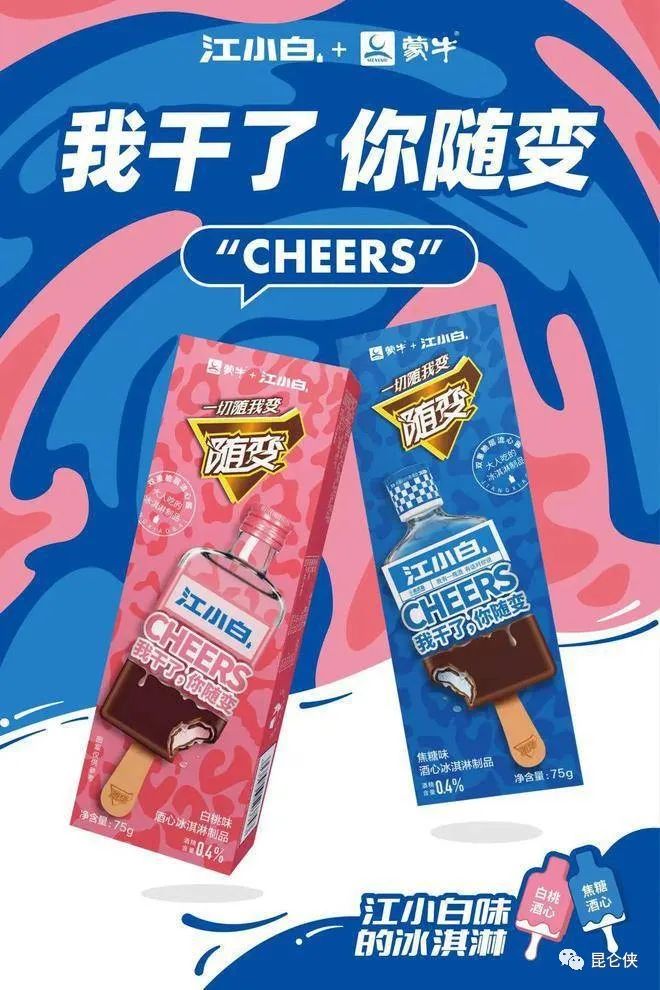 2020年,另一白酒品牌“江小白”也与蒙牛合作推出过白酒味的冰淇淋,并在外包装盒上将江小白和蒙牛随变冰淇淋的品牌元素结合在一起,“我干了,你随变”的产品Slogan瞬时吸引了不少消费者眼球,但受限于品牌影响力也并未引起巨大反响。