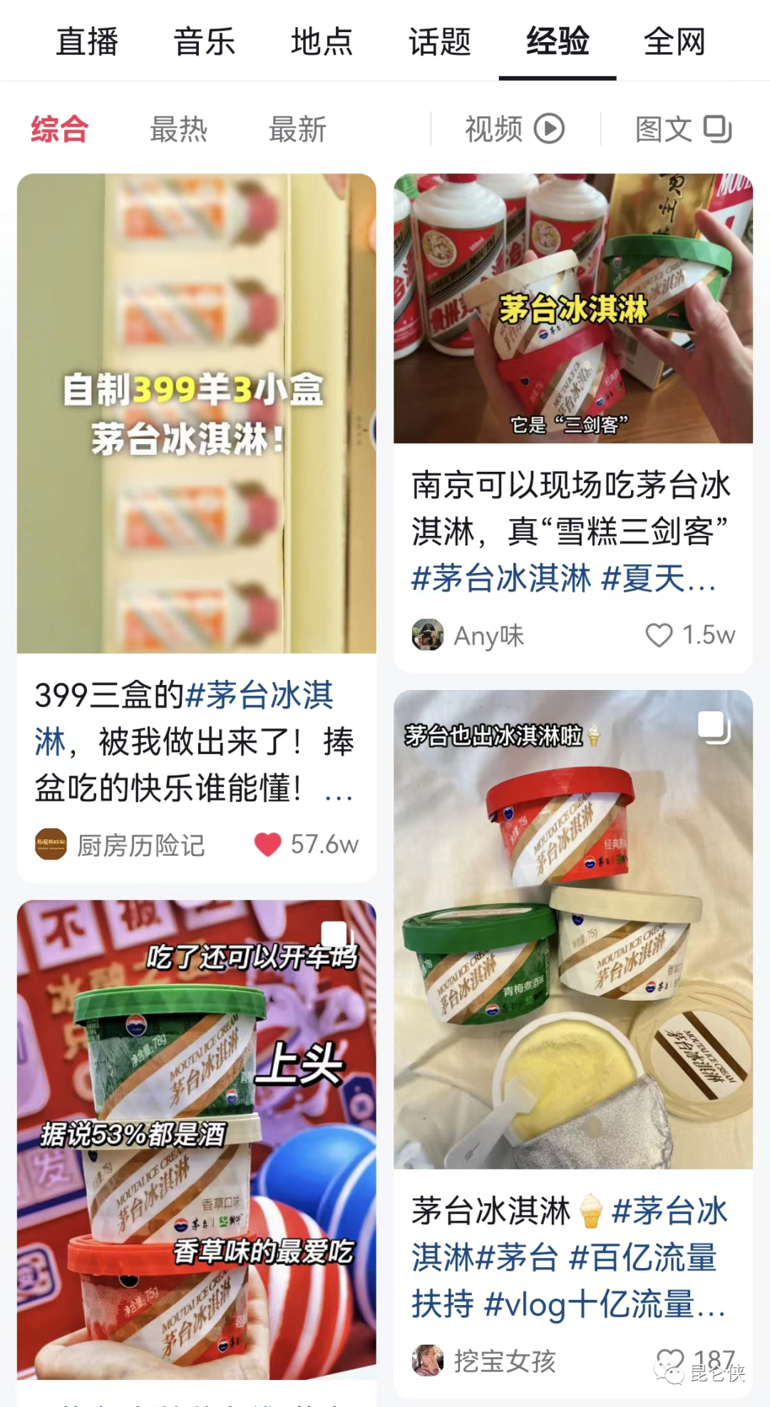 于是乎,小红书、抖音、微博等各大平台的网红大V也都看准了这个机会,纷纷花钱高价从贵州代购茅台冰激凌,各种测评文章带来了不少流量,茅台冰激凌成了时尚的代名词。