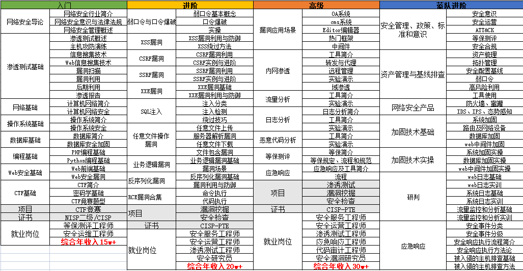 这个方向初期比较容易入门一些,掌握一些基本技术,拿起各种现成的工具就可以开黑了。不过,要想从脚本小子变成hei客大神,这个方向越往后,需要学习和掌握的东西就会越来越多,以下是学习网络安全需要走的方向: