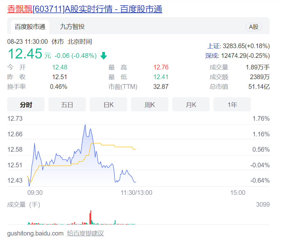 截至8月23日午间休市,香飘飘报收12.45元/股,总市值约51.14亿元 ,与2019年的峰值37.68元/股相比,股价跌幅接近七成,市值蒸发近百亿。