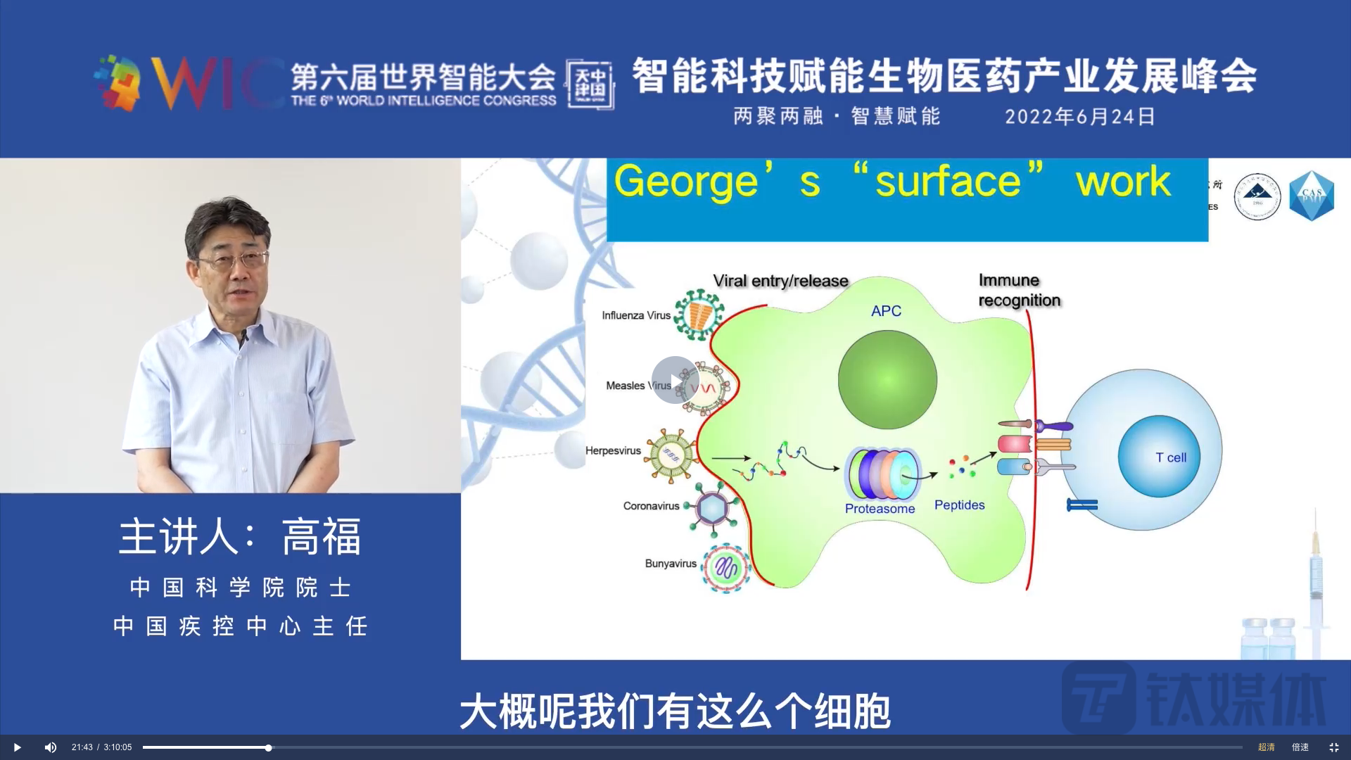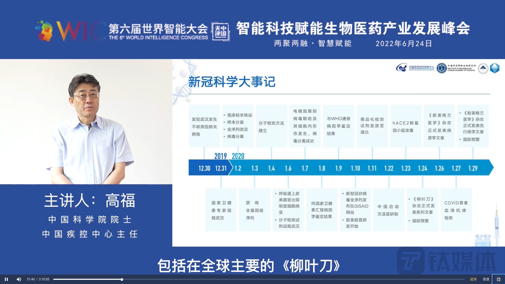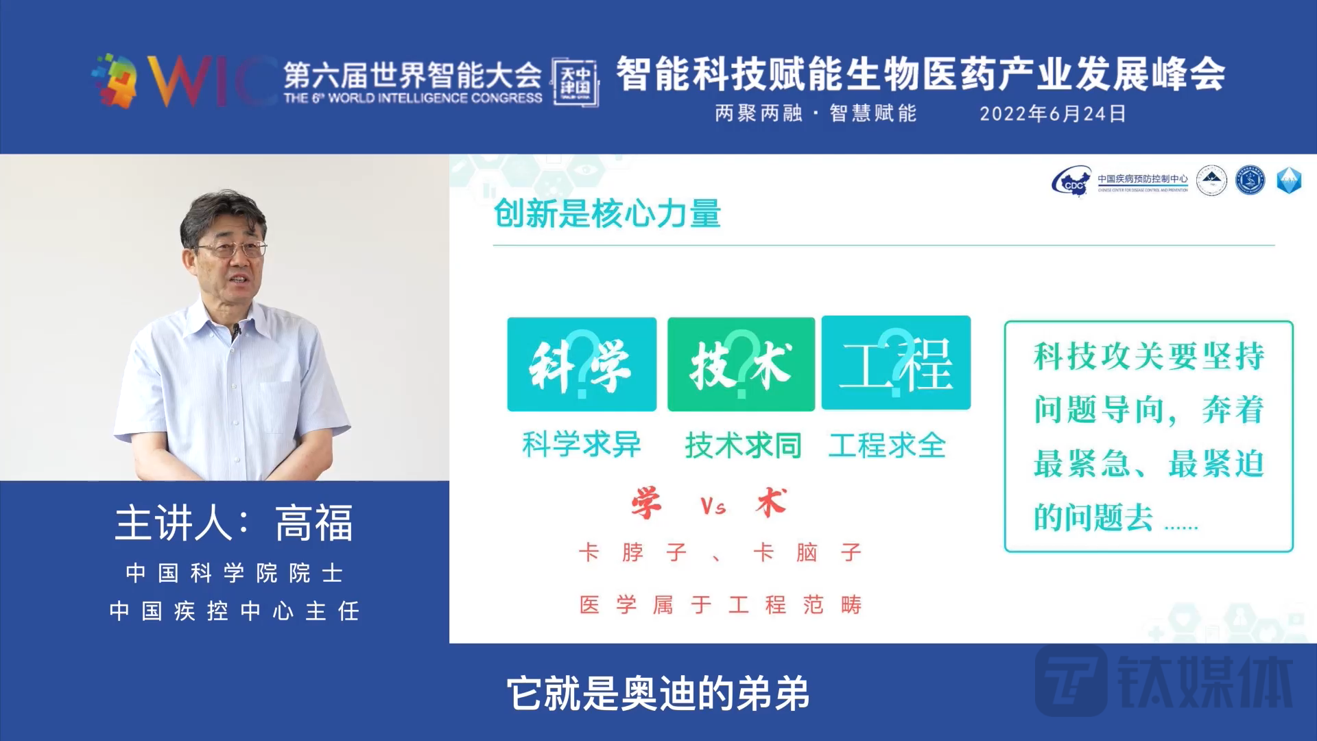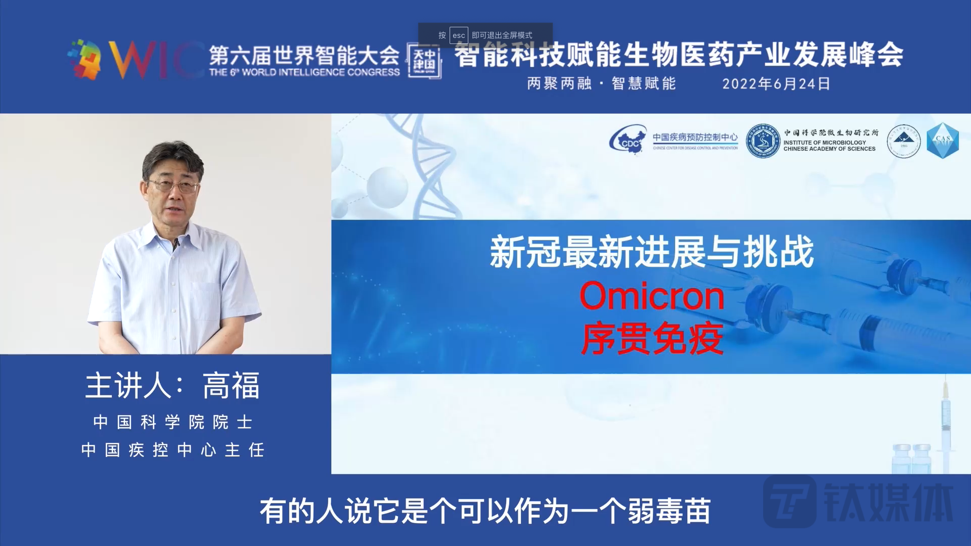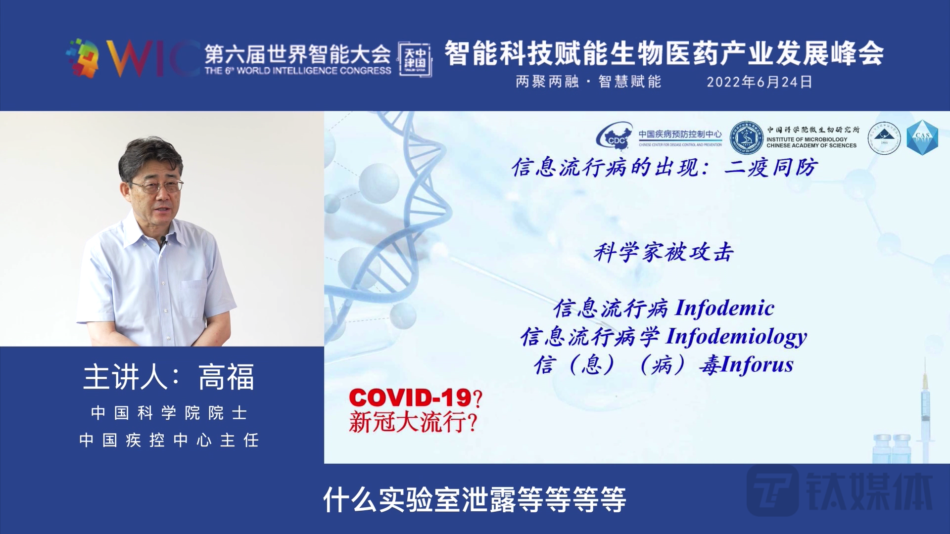 6月29日消息,钛媒体App获悉,近日举行的第六届世界智能大会“智能科技赋能生物医药产业发展峰会”上,中国科学院院士、中国疾控中心主任高福发表了30分钟左右的演讲,详细讲述新冠疫情和疫苗研发对科技前沿未来的启示,智能生物产业发展等。