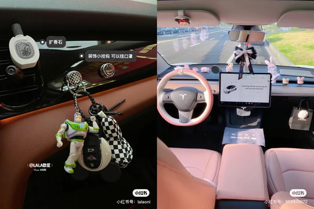 在小红书上搜索「内饰」,有超过77万篇的车载好物推荐。甚至有车主发帖称,自己是看到一位博主分享趣味改装过程后,才买下了目前这款车,加入改装大军。从车载香薰到顶棚改装,从五菱宏光mini到特斯拉,汽车在几平米见方的空间里可以丰富到成为一个大学生宿舍——在速度与激情的另一面,汽车被视为第二个家,它是亲密空间的延伸。