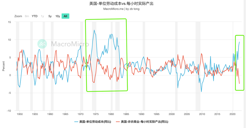 从生产效率与薪资水平关系去看,如今与上世纪80年代初颇有几分相像之处,劳动成本大幅领先于实际产出,也就是美国宏观经济层面出现了明显的供不应求关系(上世纪80年代的高通胀至今令市场心有余悸)。