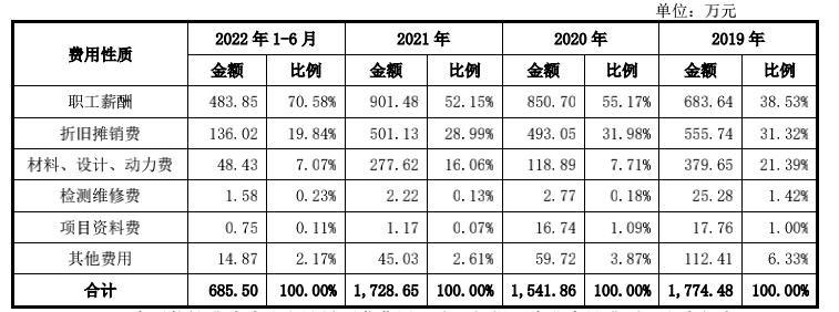 如今,竞争对手们都在不断加强技术研发和产品升级,行业的竞争日趋激烈。这意味着公司需要紧跟行业发展趋势,加大研发力度,以加固公司技术护城河。湘园新材也确实在招股书中提及研发对于公司发展的重要性。只不过,面对日益激烈的行业竞争,湘园新材的研发投入并没有跟上。数据显示,2019年至2021年及2022年上半年,湘园新材的研发费用分别为1774.48万元、1541.86万元、1728.65万元、685.5万元,研发投入的绝对金额略有波动,2021年的研发费用虽高于2020年但仍低于2019年;而研发费用占营业收入的比例分别为6.07%、5.77%、5.12%和 3.47%,占比呈现逐年下滑。