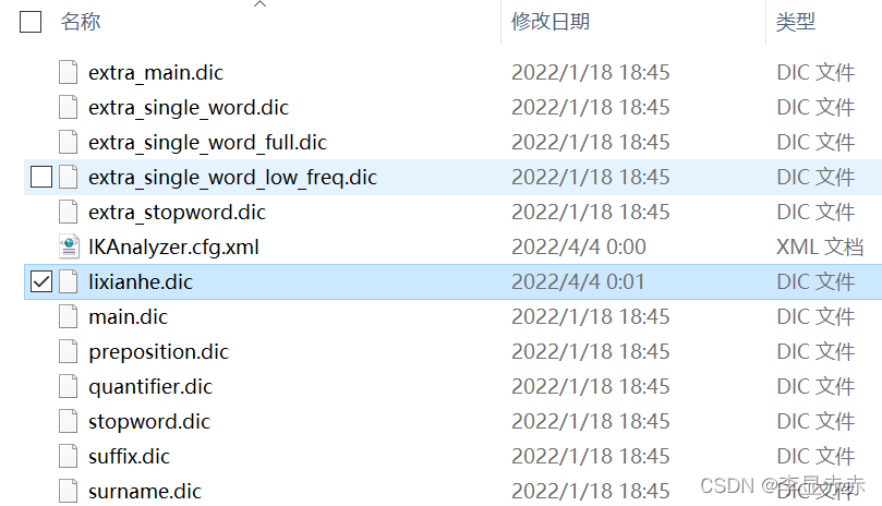 在elasticsearch-7.16.3\plugins\ik\config创建一个后缀名为.dic的文件,然后在xml中配置