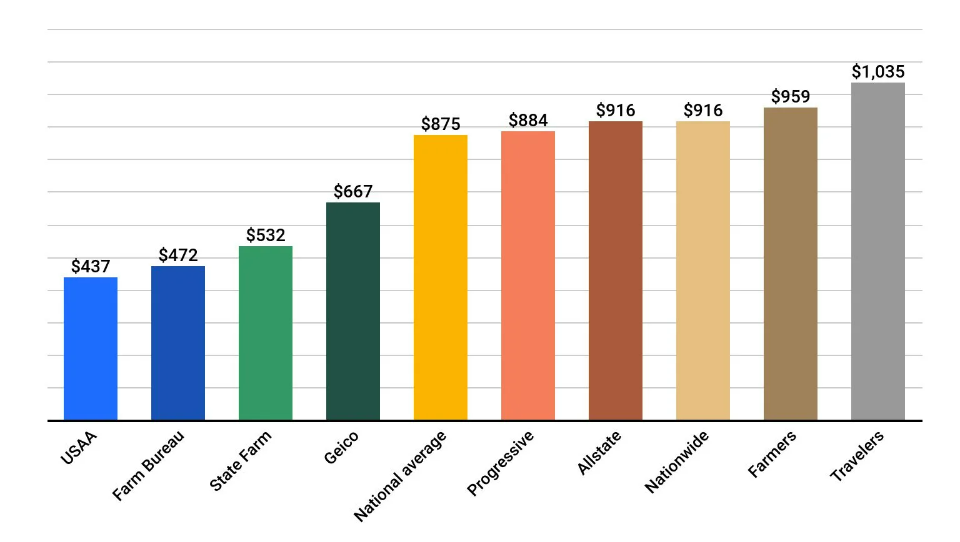 美国主要保险公司车险平均价格。数据来源:Value Penguin