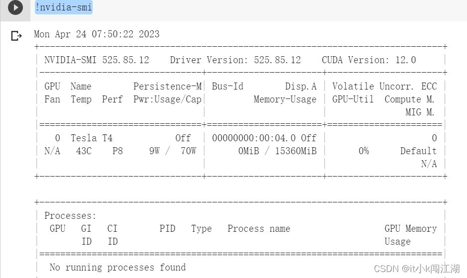 补充一点在此之前要查看colab的gpu显存是否足够,chatglm需要6-7g的显存,查看gpu显存命令