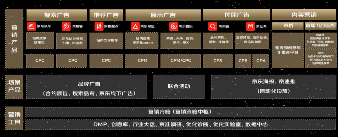 今年,京东提出营销服务全面升级为“全域营销”生态赋能,其实是把平台所有的产品、工具和服务项目都做了一次整合。
