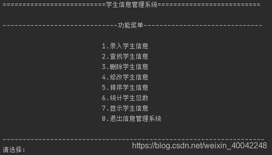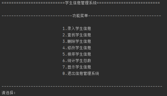 # 学生管理系统,包括录入学生信息、查找学生信息、删除学生信息、修改学生信息、排序学生信息、统计学生总数、显示学生信息。