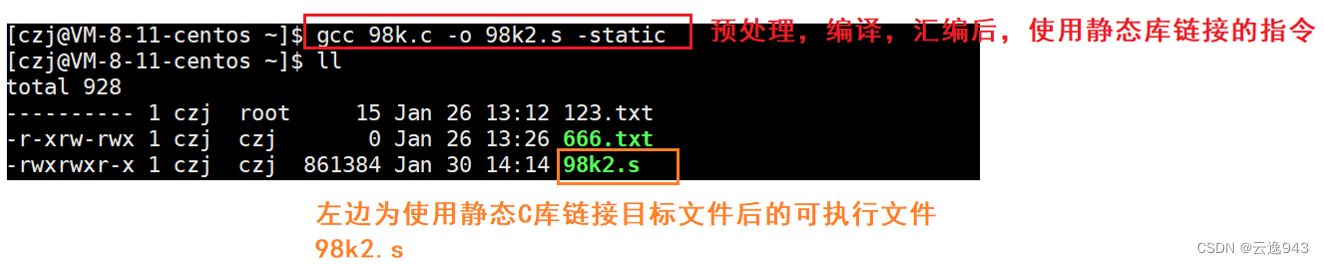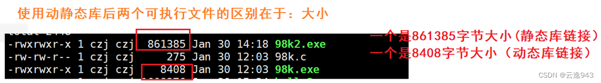 例1.使用file指令查看上面创建的两个动静态链接生成的可执行文件类型: