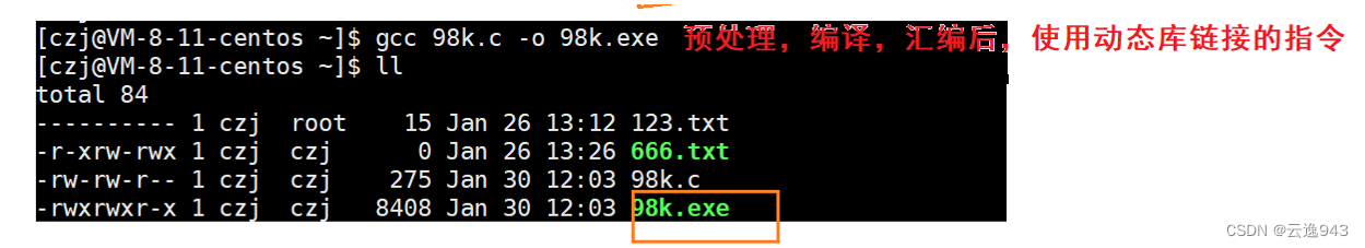 注意: gcc98k.c指今不带后面的-o..,系统会默认生成a.out(98k.c的可执行文件),若带了-o,就必须要写自己命名的可执行文件名字。