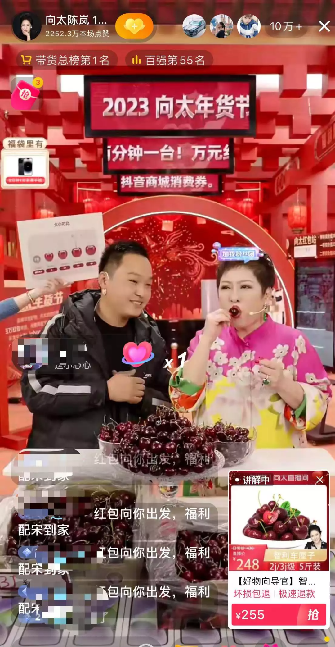 明星助阵,加上豪门身份让消费者们对这场直播期待拉满。12月19日,虽然是个周一工作日,但一开播,10分钟内,向太的直播间就涌进来80万人,稳居直播带货榜第一位,远远超过了东方甄选。