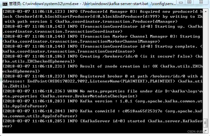 运行Kafka代码:.\bin\windows\kafka-server-start.bat .\config\server.properties