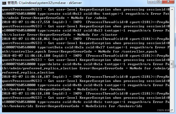 7.打开新的cmd,输入zkServer,运行Zookeeper;