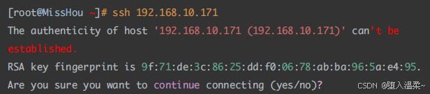提示信息:⽆法确认主机192.168.10.171的真实性,指纹是