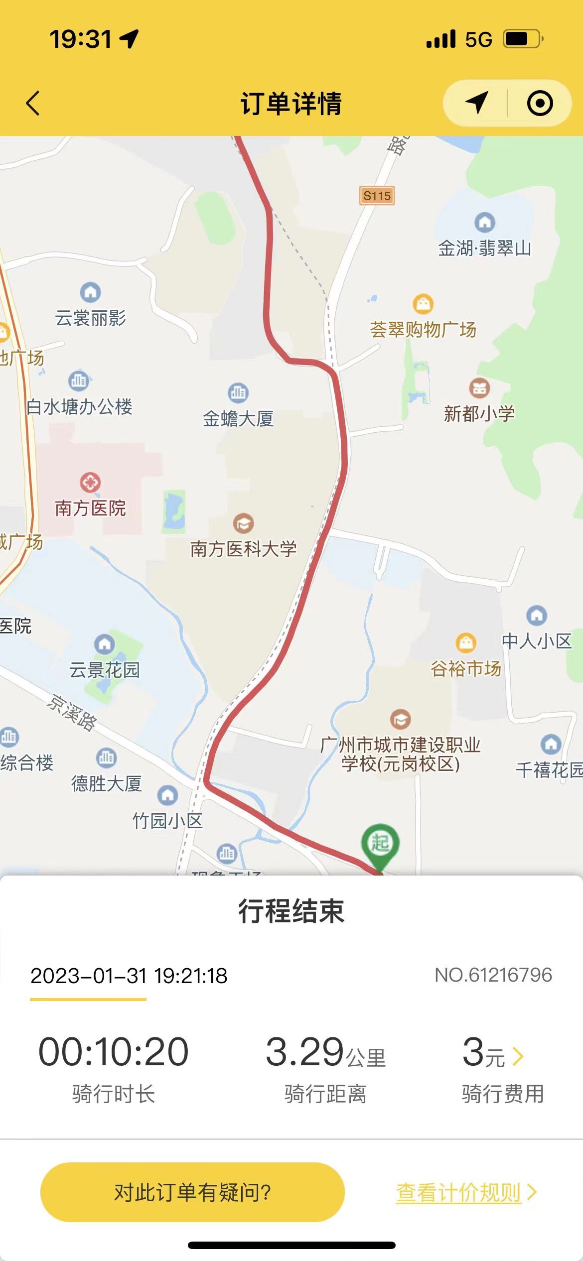 比较欣慰的是,在一排共享单车中,小雷找到了共享两轮电动车的身影,大概是因为年后,上班族还不是很多,所以路上仅有的几辆共享电动车均处于闲置的状态。经过简单的扫码+帐号注册后,我成功骑上了电动车,花了十分钟骑到了公司附近的一个停车区,花了3块钱。