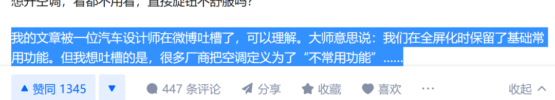一位知乎网友表示,他吐槽汽车实体按键减少时被汽车设计师回应,对方称在进行全屏化时,已经保留了基础常用功能按键。可哪些按键是基础常用功能,又该由谁来界定呢?这位知乎网友说的很对,不少车企竟然把空调实体按键取消了,令人难以接受。