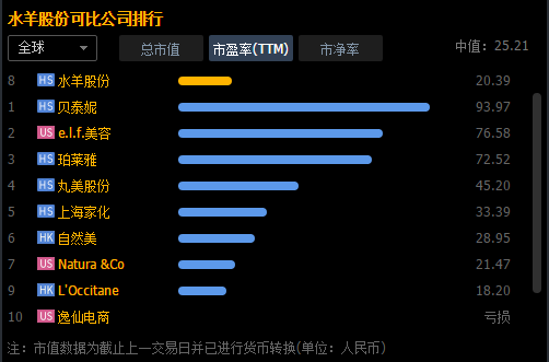 对比已上市的化妆品品牌行业平均市盈率为25.21倍,其中水羊股份自身市盈率为20.39倍,其动态市盈率则是36.4倍。