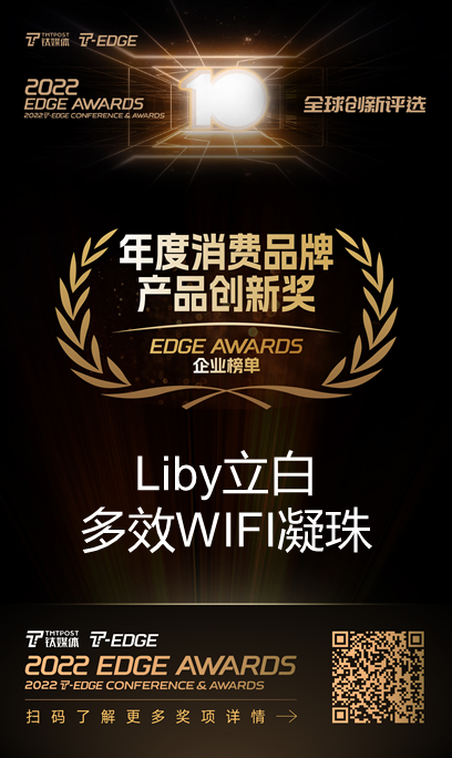 本次立白凭借Liby多效WIFI洗衣凝珠荣获2022 T-EDGE全球创新大会暨钛媒体十年致敬盛典年度消费品牌-产品创新奖,再次凸显立白是家清行业10年变革的引领者,更是凝珠品类的真正领导者。