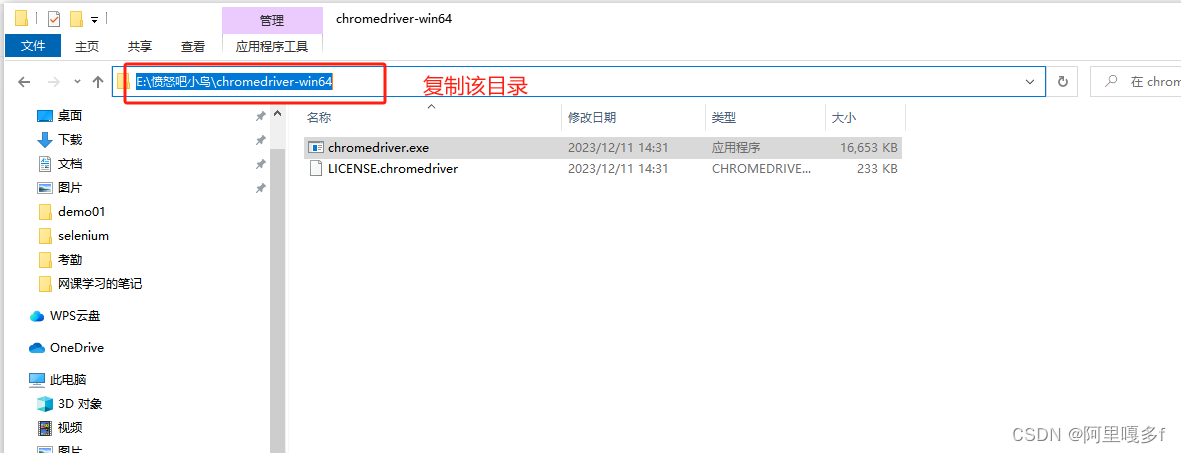 把下载的chromedriver解压,复制你解压的目录(后面代码会用到)