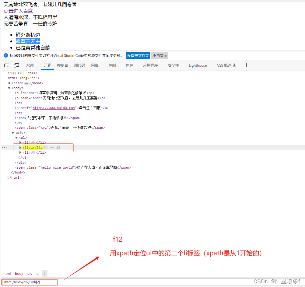 #/html/body/div/ul/li[2]是绝对路径