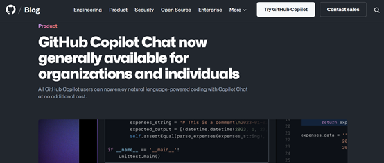 全球著名开源分享平台GitHub在官网宣布,经过几个月多轮测试的GitHub Copilot Chat,全面开放使用,一个用ChatGPT方式写代码的时代来啦!