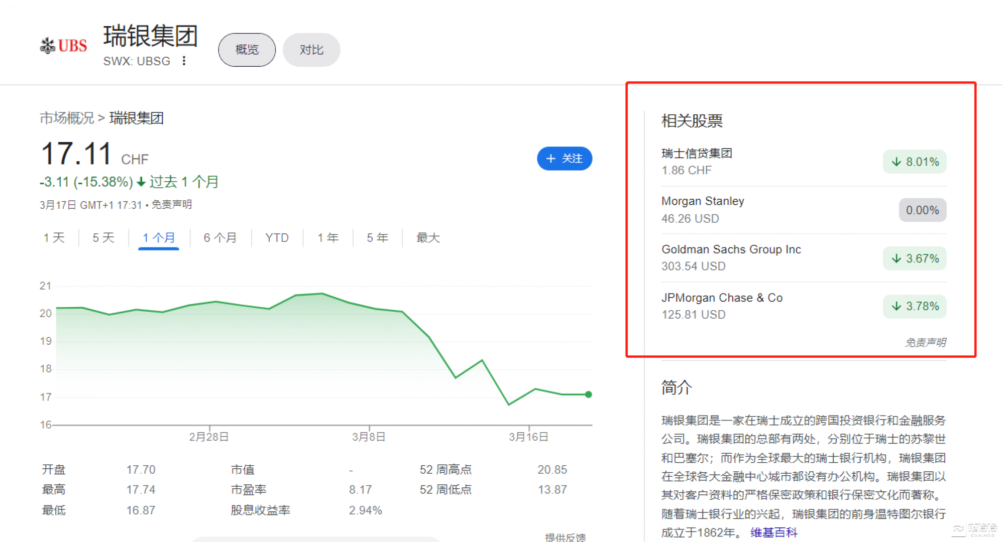 这笔交易将创建一个拥有超过5万亿美元投资资产的公司。消息公布以前,链得得行情数据显示受到SVB事件余波影响,上周银行系股价普遍下挫,瑞银股价也有小幅震动。