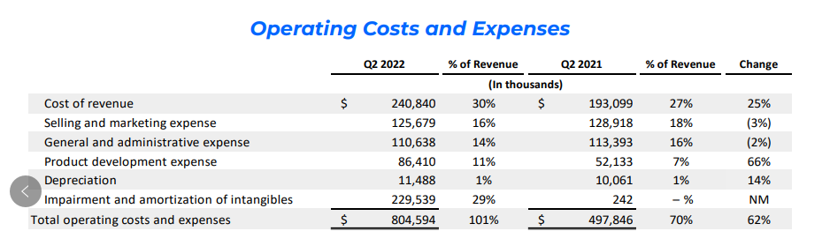 进一步详细看财报,这笔突然多出来的 2.295 亿美金,主要是 Match 对之前收购的韩国厂商 Hyperconnect 的 2 款产品的减值和摊销,因为收来主要是用来参与主营业务经营的,所以摊销到了运营成本里,而财报表示,之所以这么高,是因为对「Azar」和「Hakuna」等社交产品的业务前景看低,计提了 2.17 亿美元的减值。也就是现阶段认定,这笔买卖是亏的。而另一项主要的成本上升,则在于产品研发。无论是收购、还是研发,这 2 项 Match Group 在不断投入的地方,都是在保障自身产品的可持续吸引力。