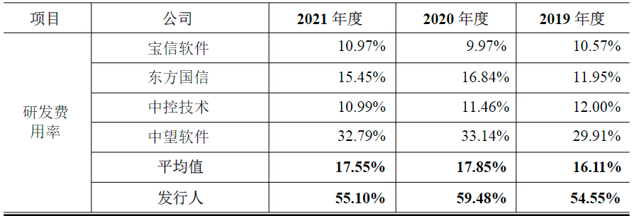 树根互联与同行业公司研发费用率对比