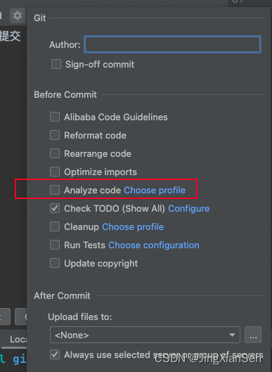 由于此java文件是代码工具生成的,里面有3万行代码,而idea的git工具默认有打开代码检查Analyze Code,导致代码检查不通过,或者超时。