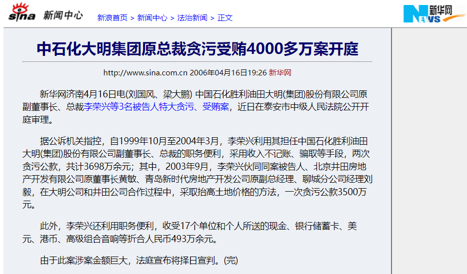 新华网对这起轰动全国的案子做过详细的报道,刘毅在北京专门成立了一家叫做“华嘉兴”的咨询有限公司,帮助李荣兴用咨询费名义套取3500万元,作为回报,李荣兴允诺支付几百万元好处费给刘毅。