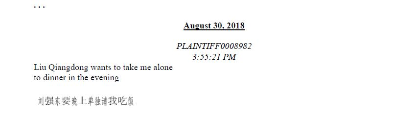 但即使没有获得检方的支持,四个多月后,刘婧尧依然向明尼苏达地方法院提起民事诉讼,这次除了刘强东,京东集团也一起被列为被告。在诉状中,这位年轻的大学生,要求两方赔偿她5万美元起步上不封顶的损失。