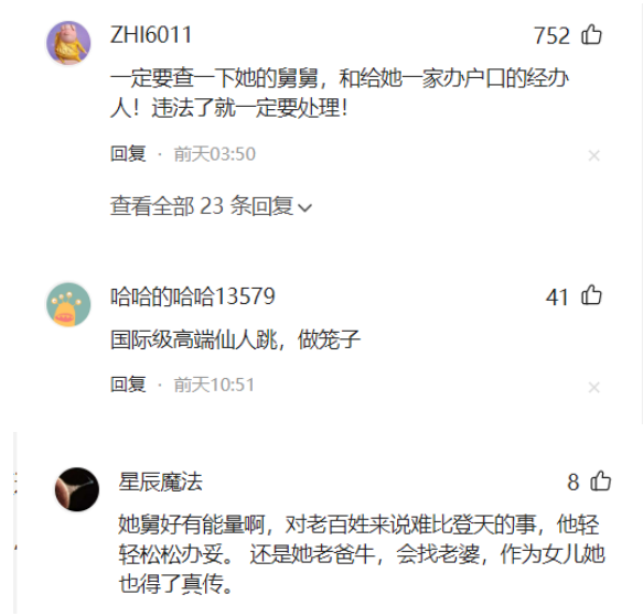 也有网友忿忿不平,“对百姓来说难比登天的事,他轻轻松松办妥”。