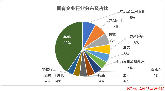 从多方面来看国企对国民经济来说都是“压舱石”。从就业和税收占比看,2021年国企城镇就业人数5633.08万人,占全国城镇就业12%;2021年,国企应交税费5.36万亿元,同比增长16.6%,占全国税收总额31%,其中央企3.62万亿元,同比增长14.0%,地方国企1.73万亿元,同比增长22.6%;从资本市场表现看,除了前文所述国企以不到A股数量的三分之一但市值规模近半以外,2021年国企营业收入占A股66.2%(合计44万亿元),利润总额占72.7%(合计5万亿元),净利润占72.6%(合计4万亿元),所得税占73.4%(合计0.95万亿元);从所处行业位置看,国企在金融、周期内数量占比分别高达27%、53%,而根据Wind行业分类划分得知金融、能源属于上游行业,国企合计占比近35%,远高于民企,截至2021年底央企在关系国家安全、国民经济命脉和国计民生的重要行业关键领域的营业收入占比超过70%。