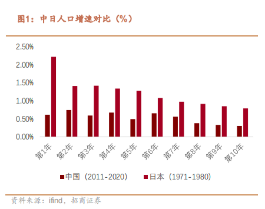 一个特质是人口变化。****中国的2011年至2020年和日本的1971年至1980年两个时间段内,在人口增速、家庭构成、老龄化等方面,呈现出很多共通之处。