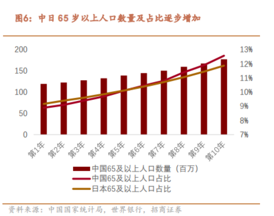 在后来的几年,中国老龄化率一路攀升,2020年第七次人口普查结果显示,我国60岁以上人口占比18.7%,65岁以上人口占比13.5%,处于轻度老龄化状态。