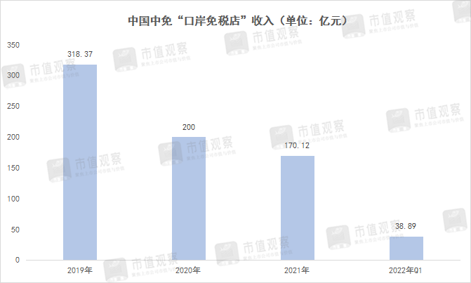 公司近期向港交所提交的招股书显示:曾经的核心业务支柱——“口岸免税店(主要是机场免税店)”收入从2019年的318.37亿元锐减至2021年的170.12亿元,降幅超过46%。