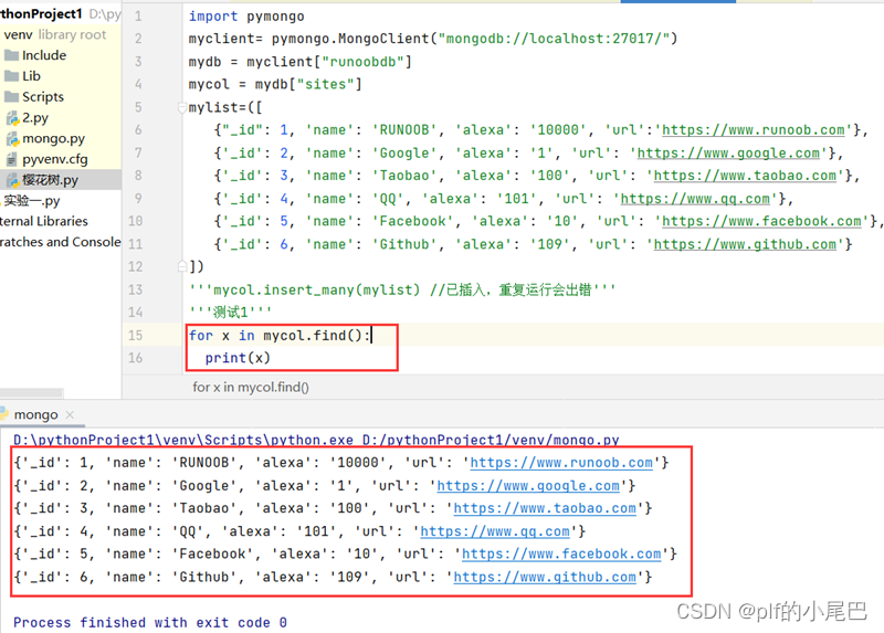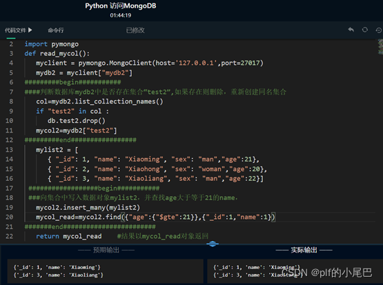 **(2)**可以使用方法insert_many()同时插入多个文档。