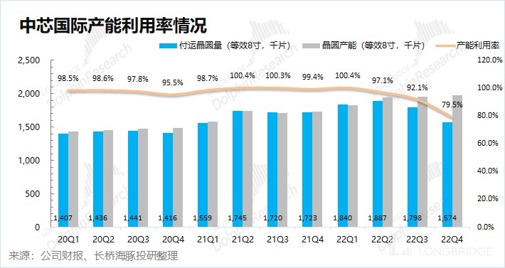 正如海豚君在上季财报点评《中芯国际:长期信仰,也逃不出 “周期魔咒”》中提到的,“公司下季度可能进一步调低产能利用率。在半导体下行通道中,公司的业绩也将随着行业可能出现进一步的下行 “。而在本季度财报,公司的产能利用率也更是交出了 “令人大跌眼镜” 的 79.5%(环比骤降达到 12.9%)。
