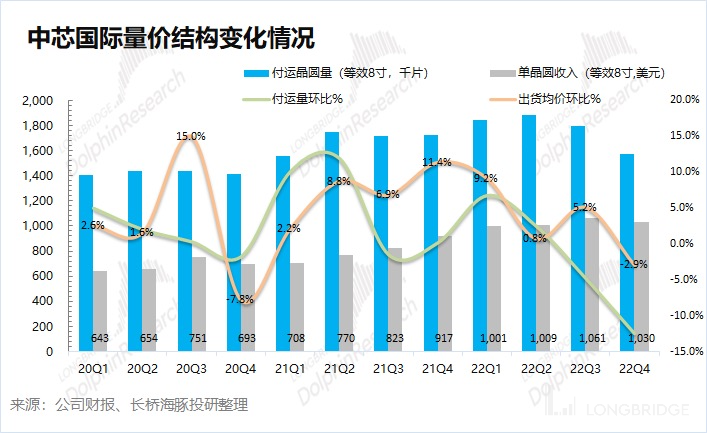 1)量的维度,中芯国际本季晶圆付运量(等效 8 寸)达到 1574 千片,环比下滑 12.4%;