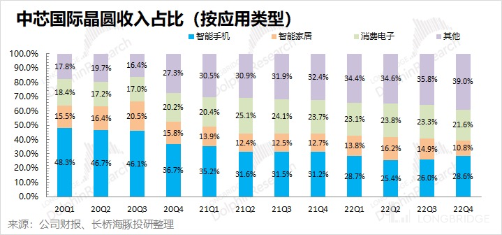 细看中芯国际各下游的情况,本季度智能家居和消费电子业务出现较大的环比下滑,这主要是两者具有较明显的可选消费属性,受整体消费面影响较大。而此前份额不断缩小的只能手机业务,本季度继续表现企稳的态势。海豚君认为,虽然智能手机需求端仍未见明显好转的迹象,但是由于部分厂商此前较早的进行库存消化的举措,智能手机或许会较早的迎来 “困境回暖” 的机会。