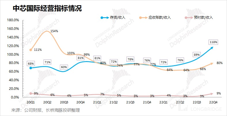 ③结合资产负债表中存货&应收账款和收入之间的关系,本季度存货/收入和应收账款/收入分别为 118% 和 80%。从营运指标的角度看,中芯国际的存货继续走高,已经达到历史峰值。