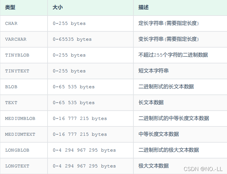 一般来说,只有char 和 varchar常用,其他相对较少用;