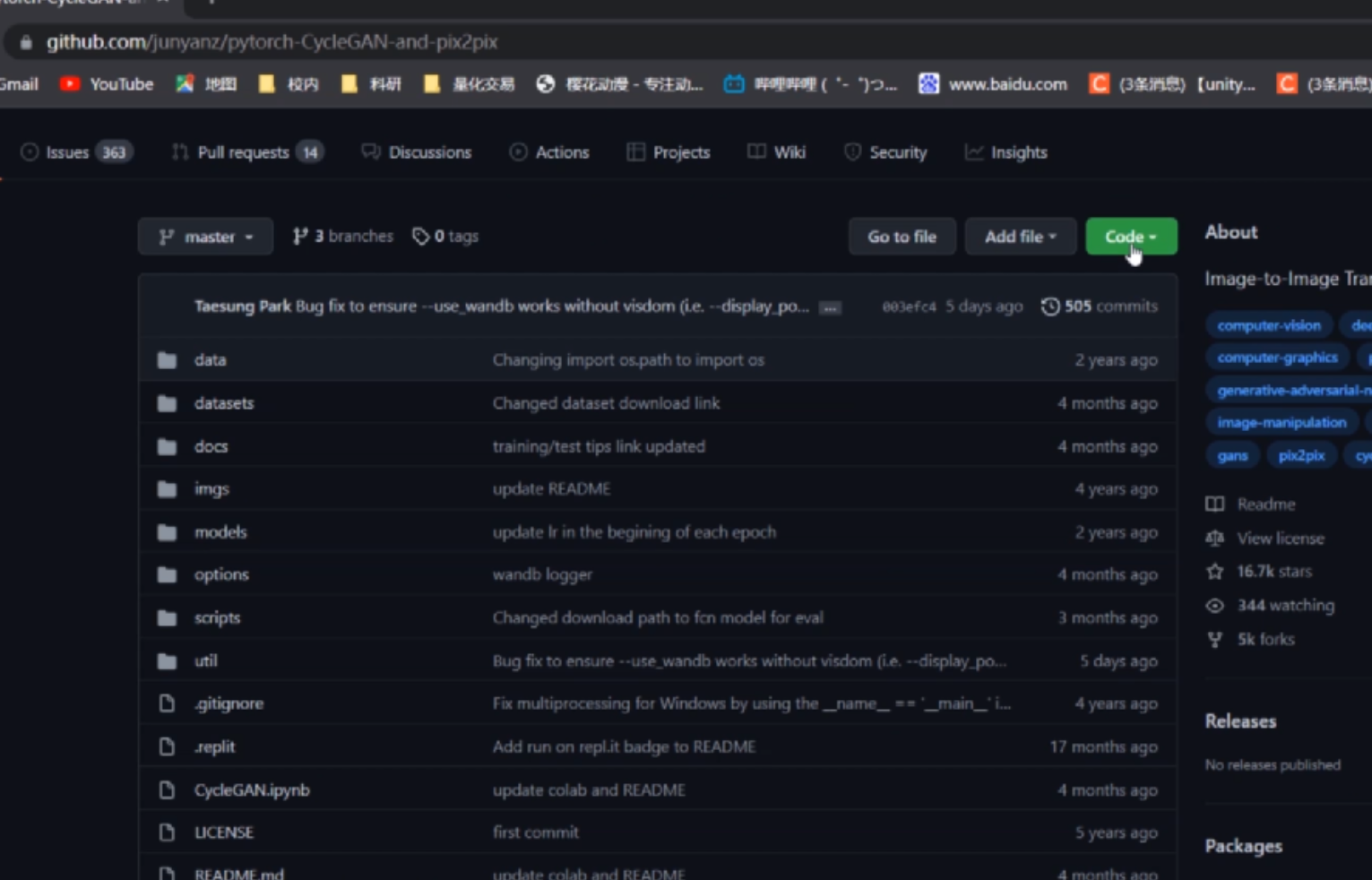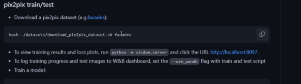 在Github中找到pix2pix的指示,按照它的指示来即可