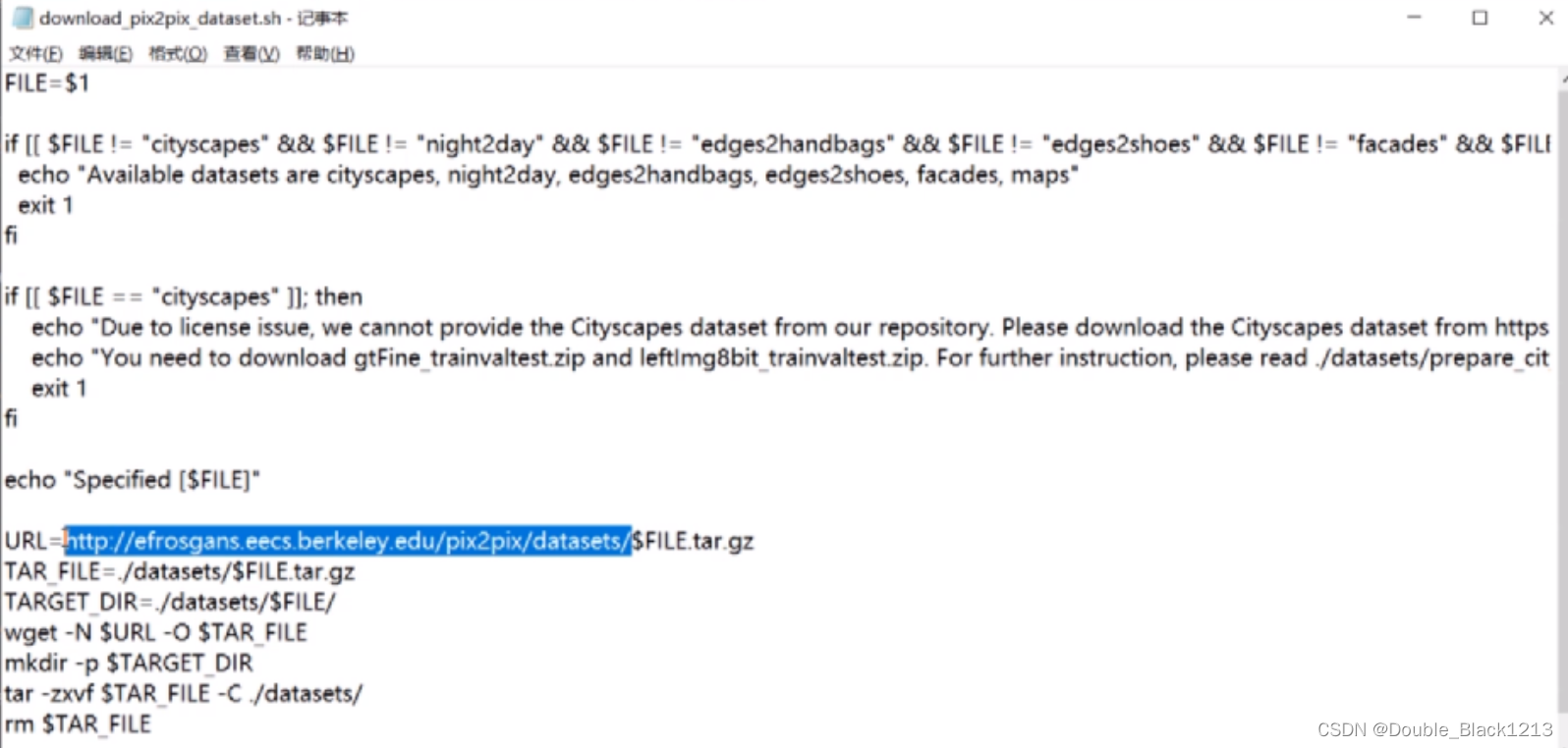 我们在记事本中找到一个网址URL。从上图可以看出 .sh后面是跟一个文件名的,于是我们复制网址的时候是不需要复制后面的文件名的